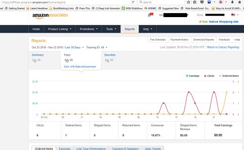 I posted an item available on Amazon on October 31st. My Amazon chart shows that from October 25th to November 23rd, I received 6 clicks and 1 ordered item as of yesterday, November 23rd. So, in a span of 23 days, I've made my first sale from my renewed efforts of physical products.
