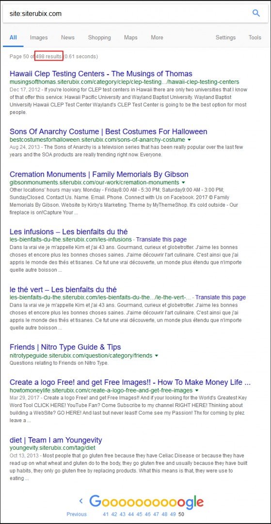 Since I hope to work on it later today, I still had the SERPs for siterubix .com tab open. The first screenshot below is from there.