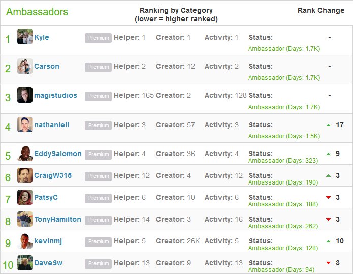An especially big "congratulations" to Laetyn, for moving up 13k places! (Laetyn: I made a graphic for you, to mark your monumental achievement. It's yours if you want it).