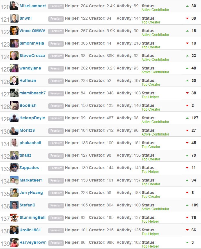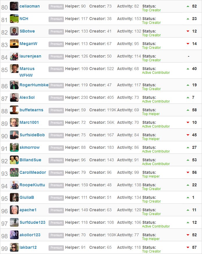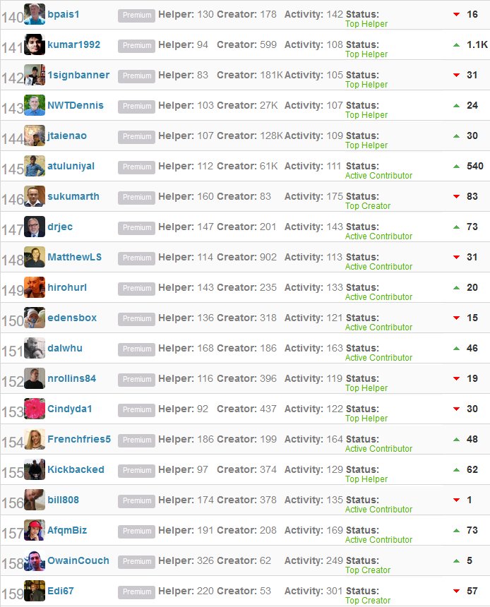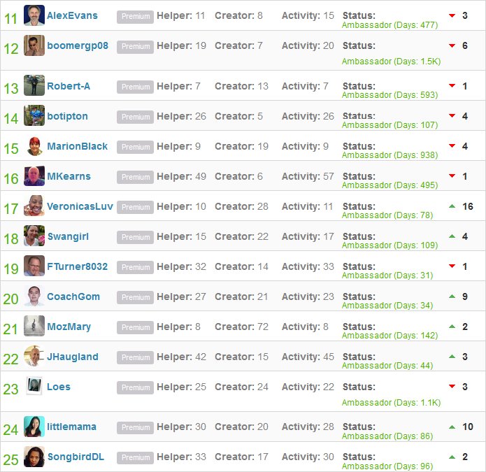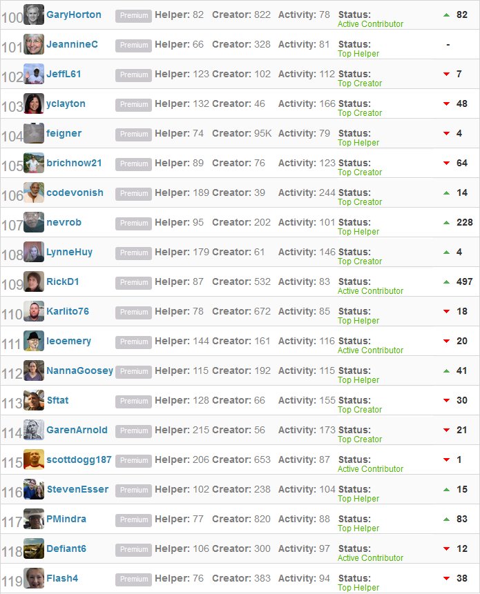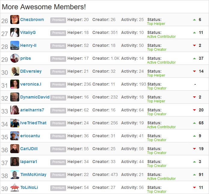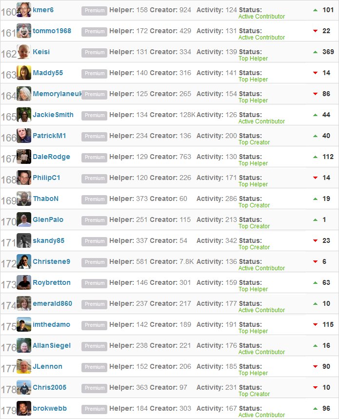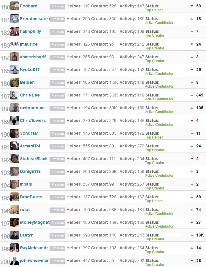 I went to the "Top 200 Members" page to see. I had, indeed, jumped in rank. That's hardly "post-worthy". It's what else I saw as I glanced at the rank changes that prompted this post.