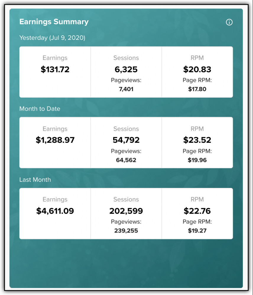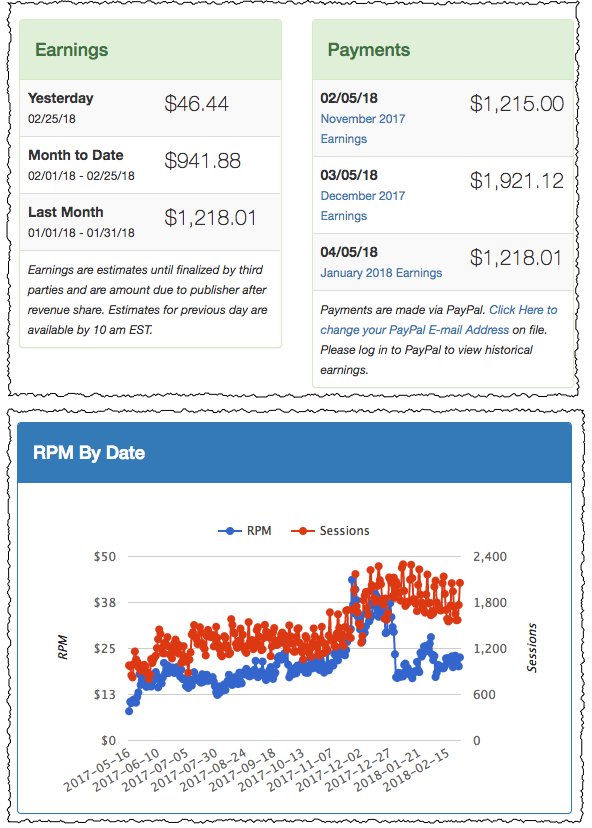 After another year of growth, RPMs and revenue has grown too. Here are my current stats from one website, just based on ad revenue alone (not counting affiliate revenue!).