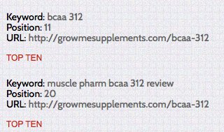 Now, for the BCAA 312 review, the keyword that I was actually targeting was "Muscle Pharm BCAA 312 review"(quotations not included in original keyword) but upon checking the ranking of my content, I found it to be ranked initially at position 15 for keyword "BCAA 312".