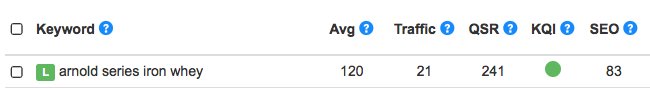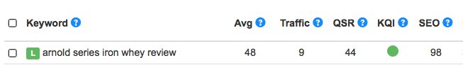 Here's the Jaaxy search results for the keyword I'm using for the other article that I mentioned earlier. I'll provide 3 variations of it but the one I focused on was "arnold series iron whey review".