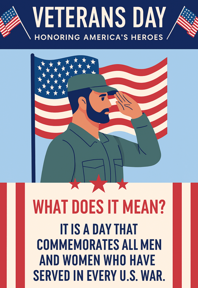 Veterans Day, observed every November 11th, honors all U.S. military veterans—living and deceased—who have served in any branch of the armed forces. Unlike Memorial Day, which specifically commemorates those who died in service, Veterans Day recognizes all who served, whether in combat, peacekeeping, or support roles. It’s a day to acknowledge the living legacy of service and the ongoing sacrifices made by veterans and their families.