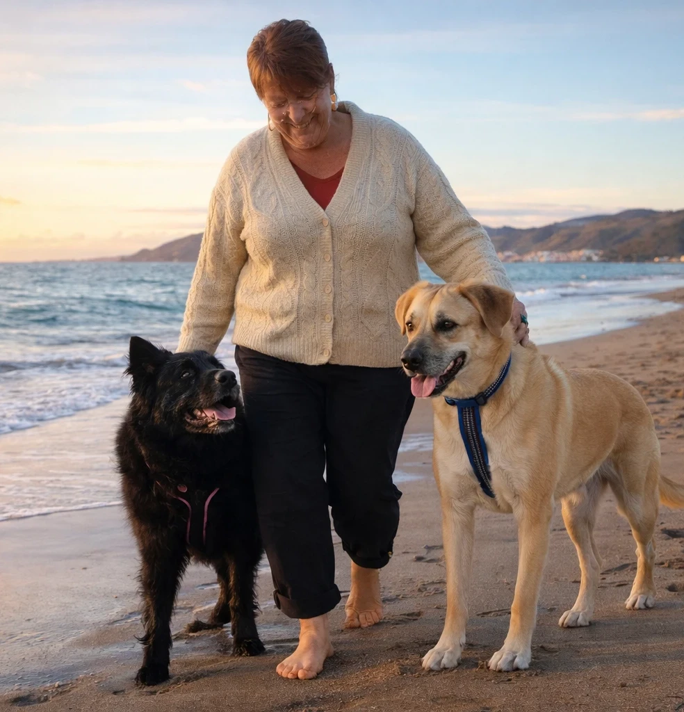 Using that as a reference I was able to create new scenes and put me directly in the image. Unfortunately, it still got the spreading waistline right and gave me shorter legs. But hey, my dogs look good.