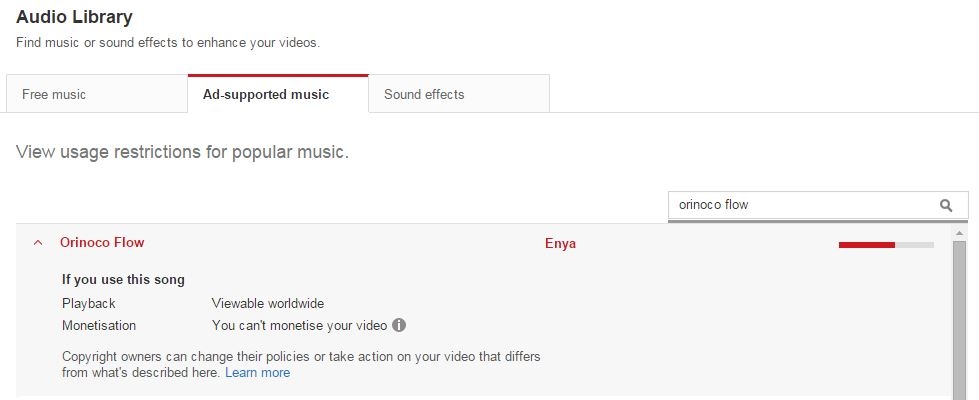 Enya's Orinoco Flow on the other hand, is available for use (but you can't monetize it).
