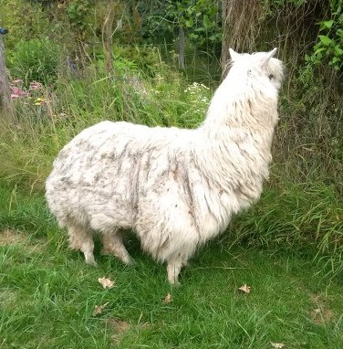 This is Bart with over 12 inches of fiber. When wet, this coat must weigh at least 50 lbs. Alpacas grow around 3 to 6 inches of fibre per year. He has been roaming free for at least 5 years.