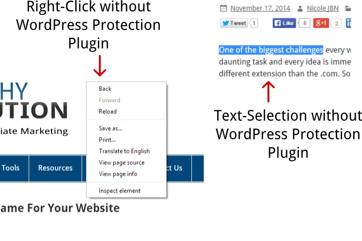 There are two versions of the plugin but for the basics to be disabled, you only need the Lite Version which is free. I use this plugin as it blocks any right click and text-selection of my content. Even shortcuts like CTRL+C, CTRL+V, CTRL+A and CTRL+X are disabled.