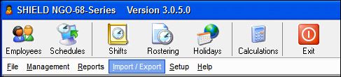 The import / export button is clicked, look at the shield program screen above after the button is clicked a pull down menu appears. In the menu is the two flash drive options--select the flash drive option 1. this option is ---import from flash drive, to export all the clockings into the Shield program for processing to produce the final attendance reports.