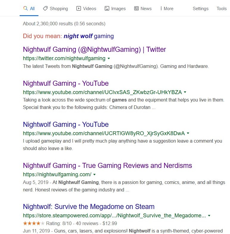 My website is the fourth listed if you do a search for "Nightwulf Gaming" and Im super excited!