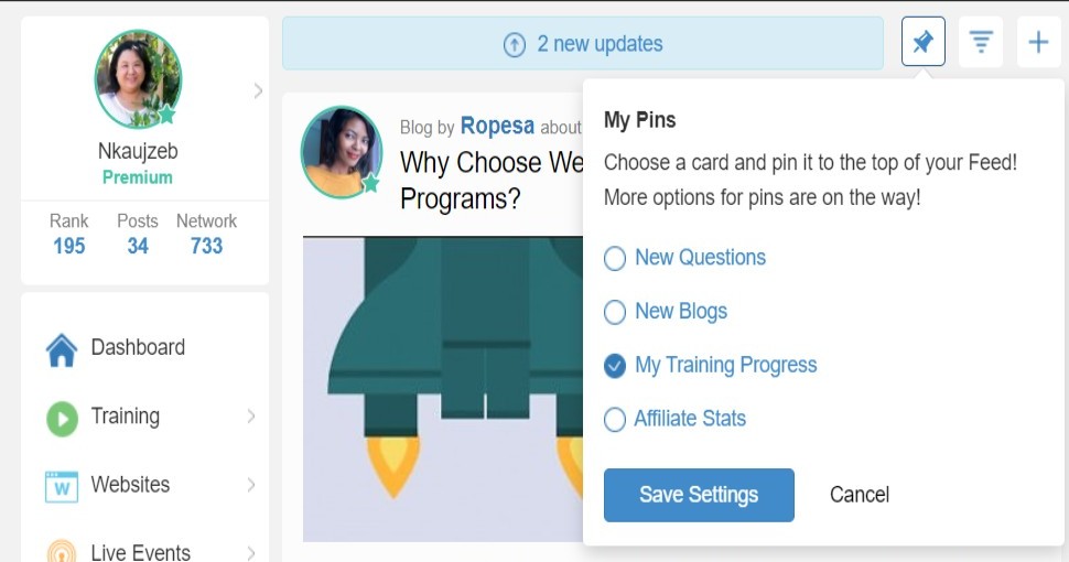I love the new look of our profile. Something looked off as I scanned around the my home page (dashboard.) I couldn't put my head on it. Then I realized oh my pin, that I always have up to remind me where I was at is missing!