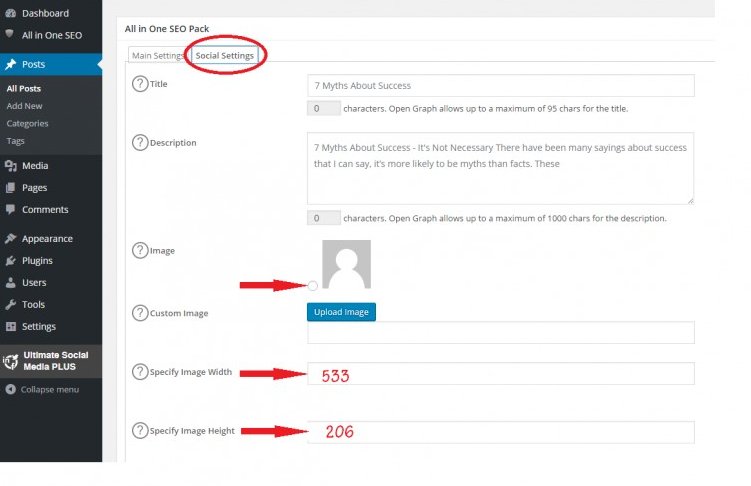 So when you are setting up your social media setting which is located just below your wordpress editor