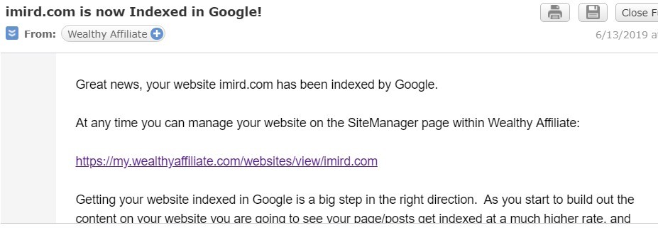 Only for me this morning to get an email that my website has been indexed. My initial thought was that it was the site I have been busy with that got indexed only to read the email and discover that it was another. I was shocked.