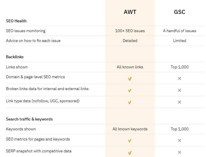One cool thing about AWT is that provides additional data to that provided from Google Search Console.