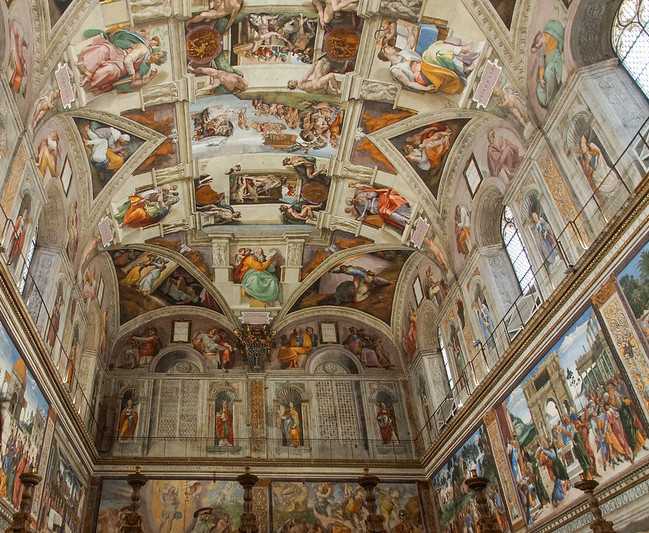There on a ladder in the middle of the room was Michelangelo’s great, great, great, great, great, great, grandson painting away happily on the ceiling.