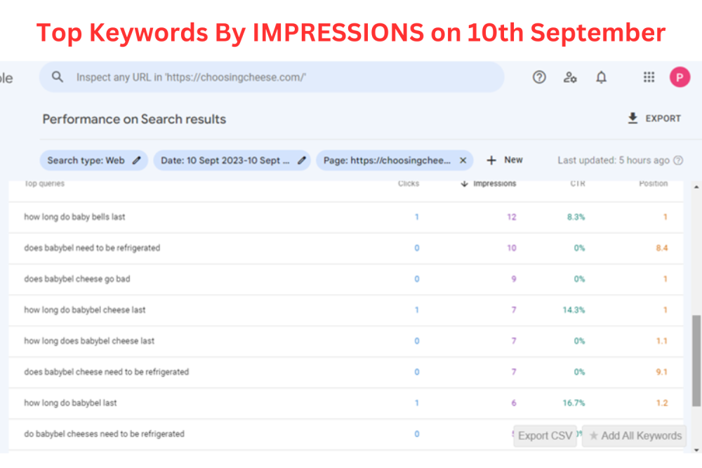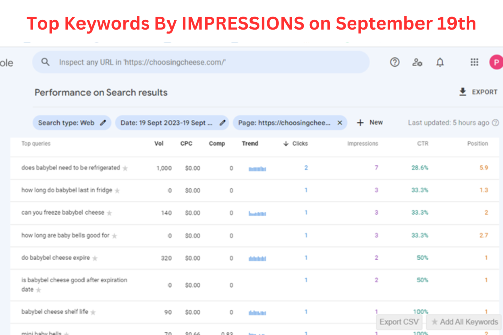 Here’s my Google Search Console stats showing the “top queries” that this article is receiving clicks for.