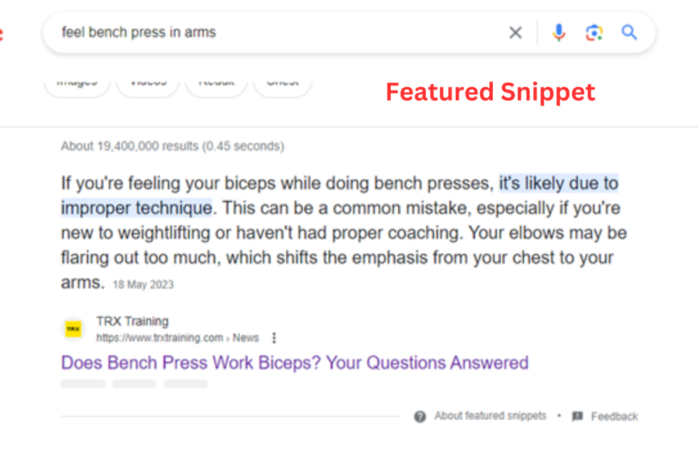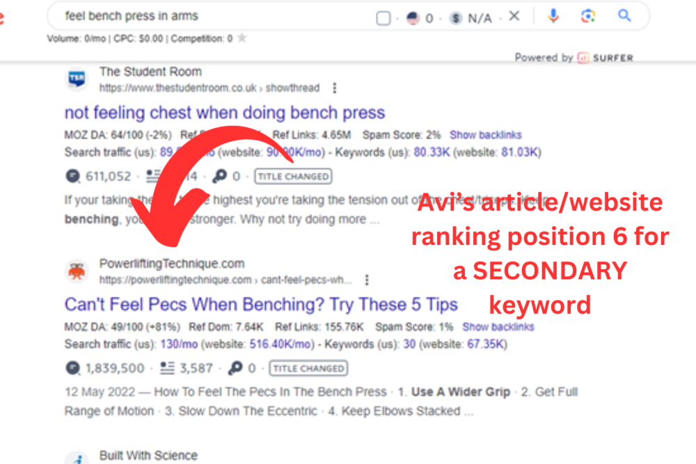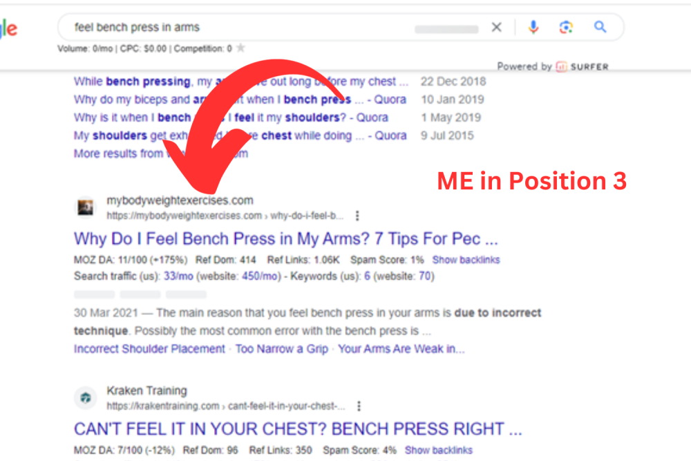 Furthermore, the article that is ranking at number one, sure it’s exercise-related, but the entire website is focused around TRX training (suspension resistance training).