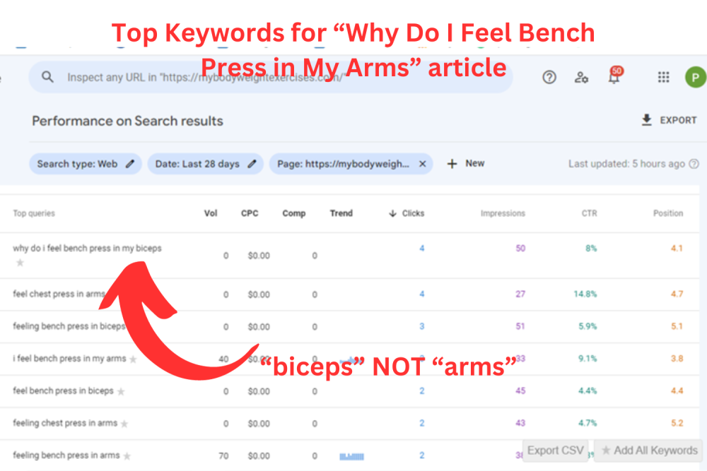 And as you can see the title is NOT about “feeling” bench press in your arms, but rather does bench press actually work your biceps.