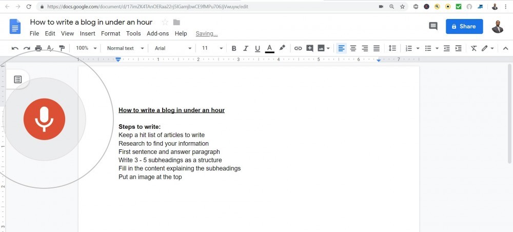 If you are like me writing all this content can be a challenge, but there is a FREE tool that will let you speak your ideas and write it for you. This FREE tool is called google docs and it is very accurate.