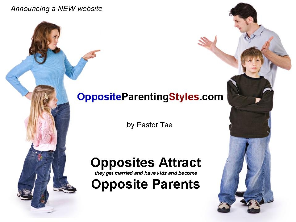Hi Pastor Tae - I can't wait to check out your website on opposite parenting styles - what a great idea ! Yes I can really relate to this - my husband and I are like mars and venus - totally opposite and after 13 years I still have no idea how his brain functions. Yes I am a christian too ! The Bible gives guidance but there are some grey areas too ... Looking forward to having a chuckle !
