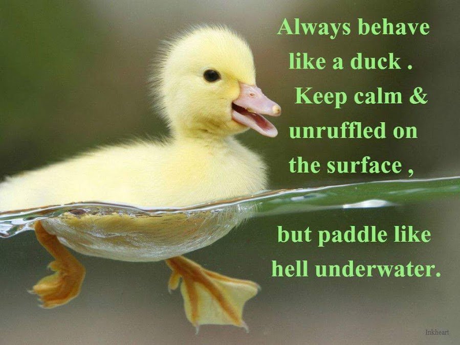 This is definitely me, everyone thinking I am so positive, upbeat, cool, calm and collected but little do they know that I am really paddling frantically underneath the water to get things done.