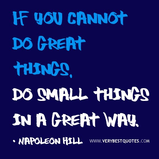 If you cannot do something great, then do something small... sometimes the smallest things means the most to others. A hug or a smile.