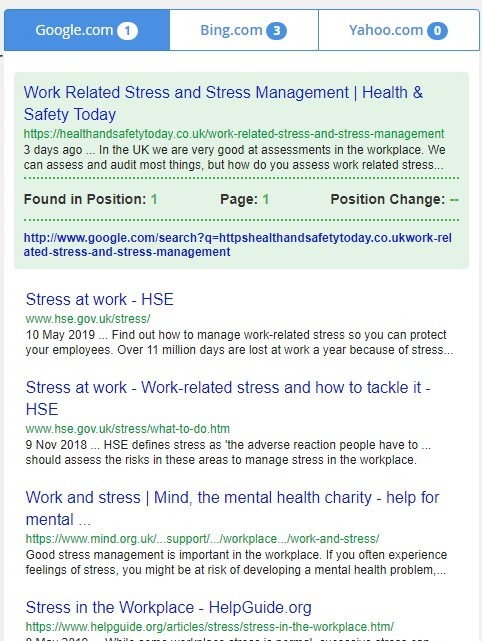 Not only that, it leaped right over the HSE article (The government Health and Safety Executive) on how to tackle work related stress so Google must have thought it was pretty relevant