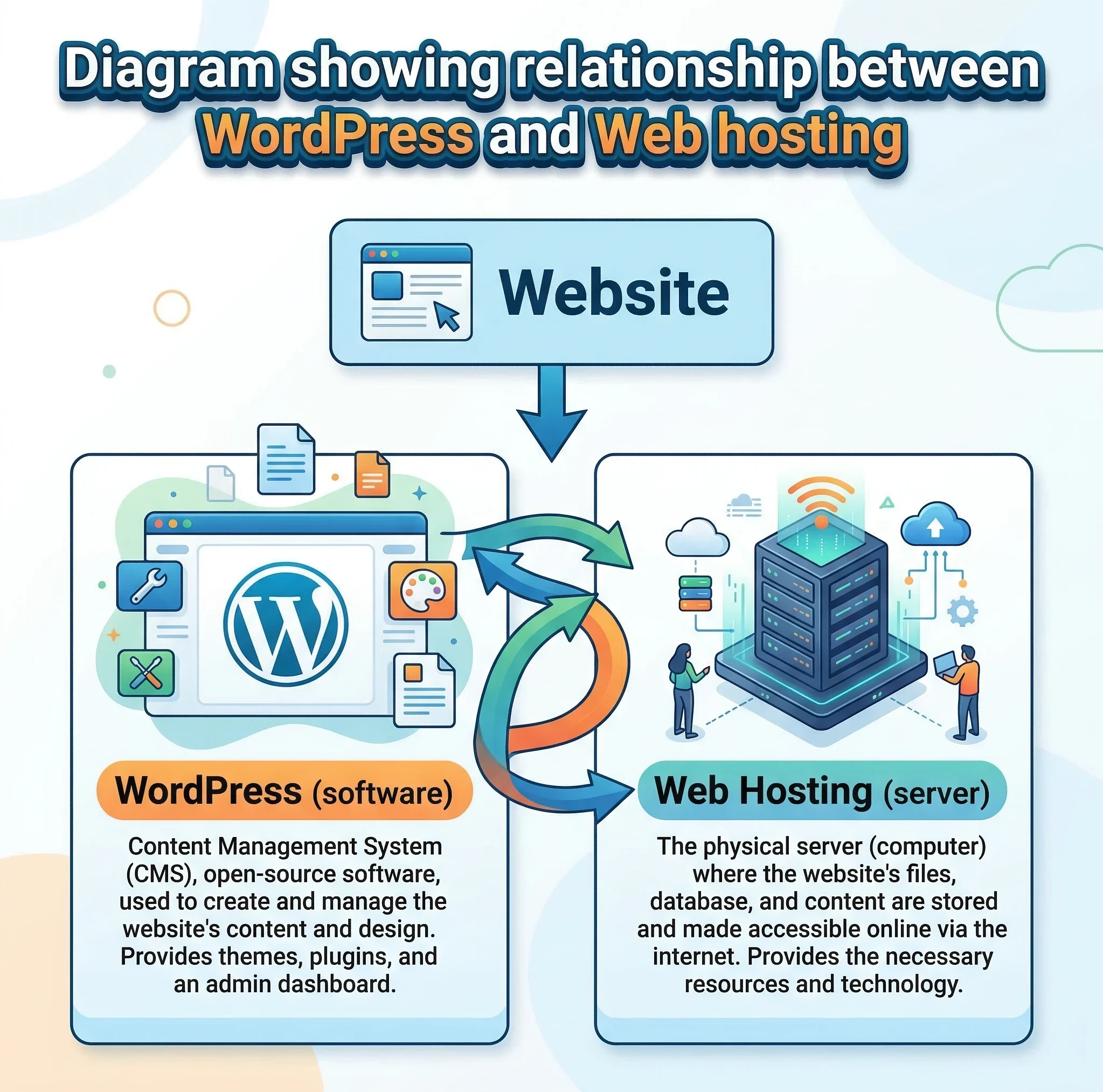 If online business were considered to be like a house, then WordPress would be the architecture and Web hosting would be the land that it sits on.