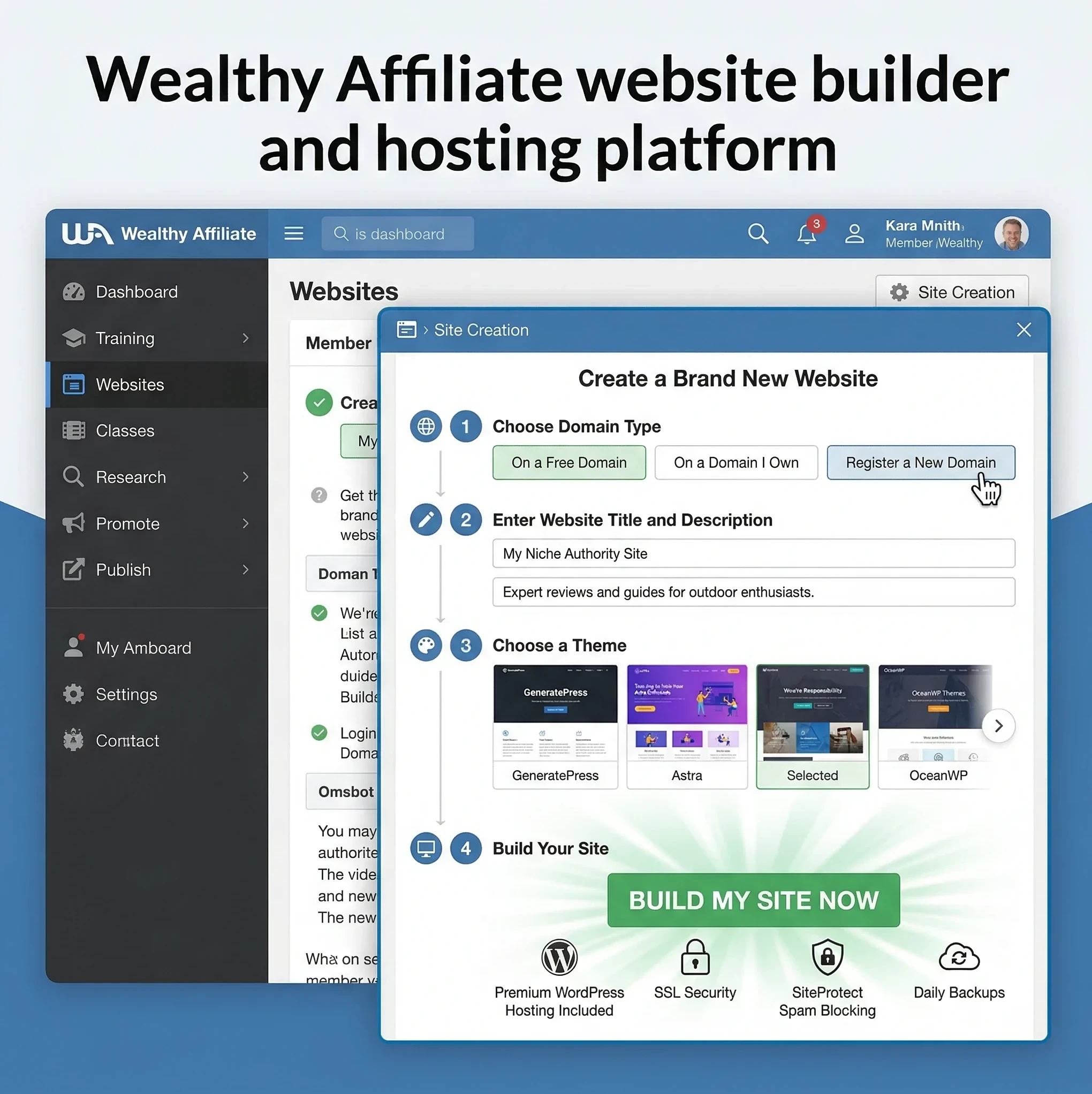Using integrated tools inside Wealthy Affiliate, a new WordPress website can be launched in just a few minutes.
