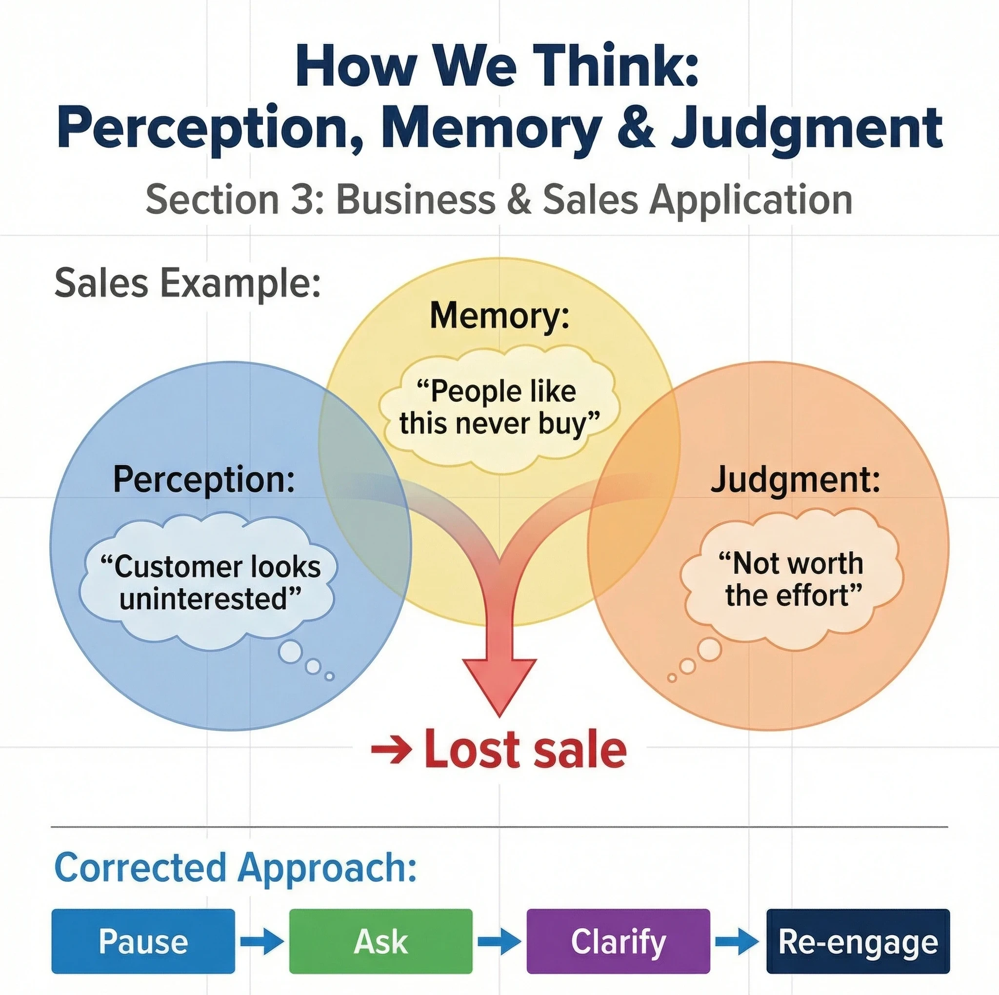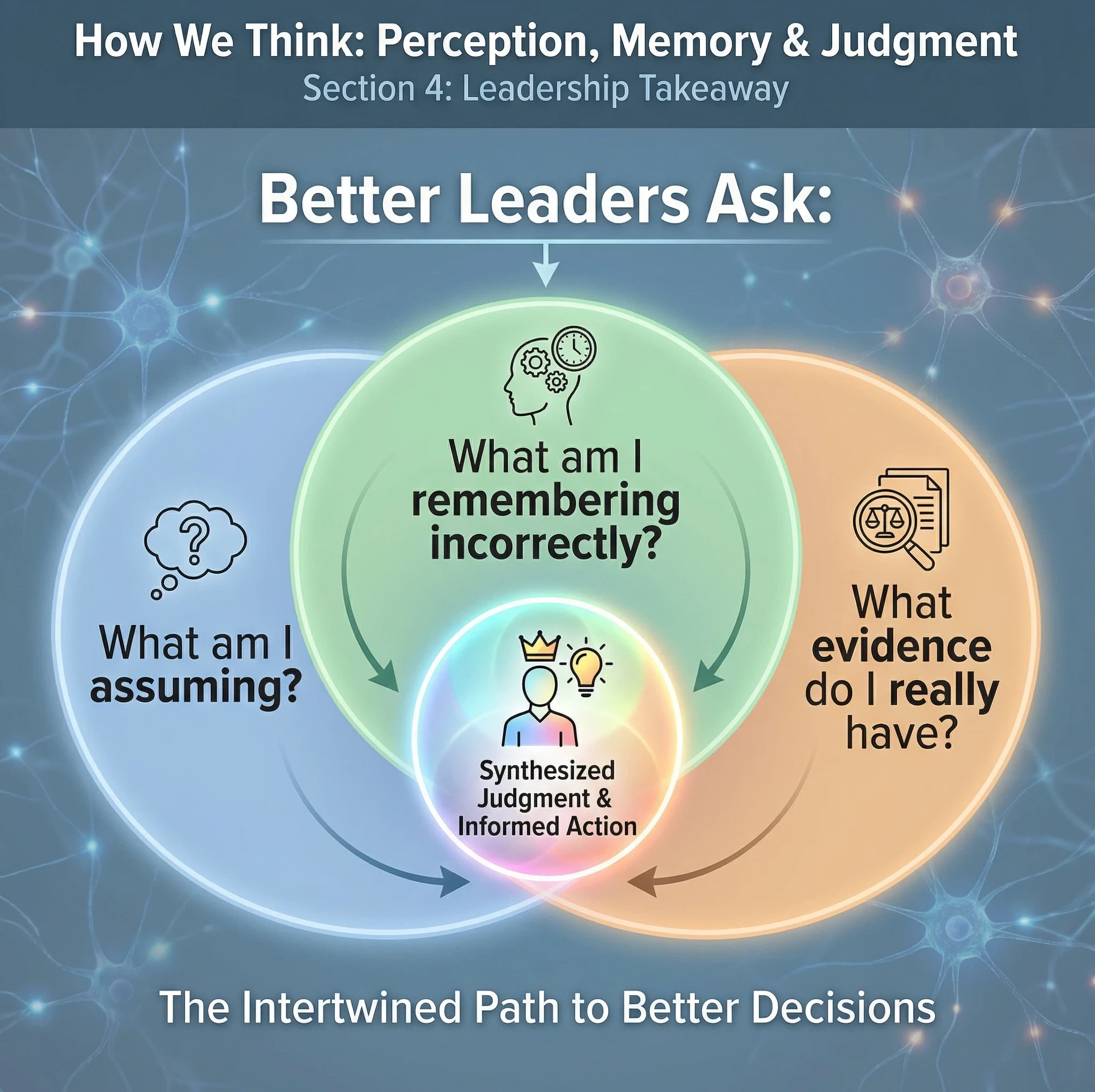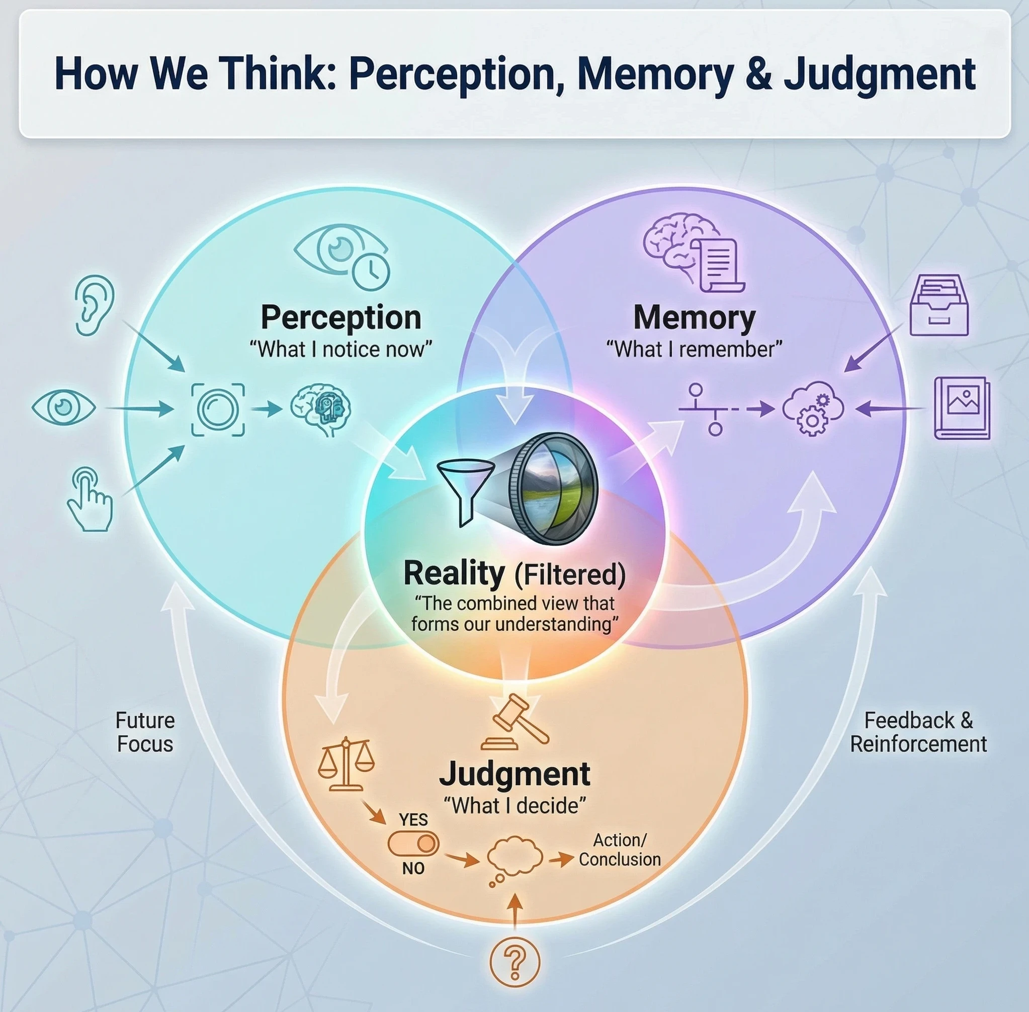 A simple reminder that what we see, remember, and assume shapes our decisions. Being aware of this helps us make better choices.