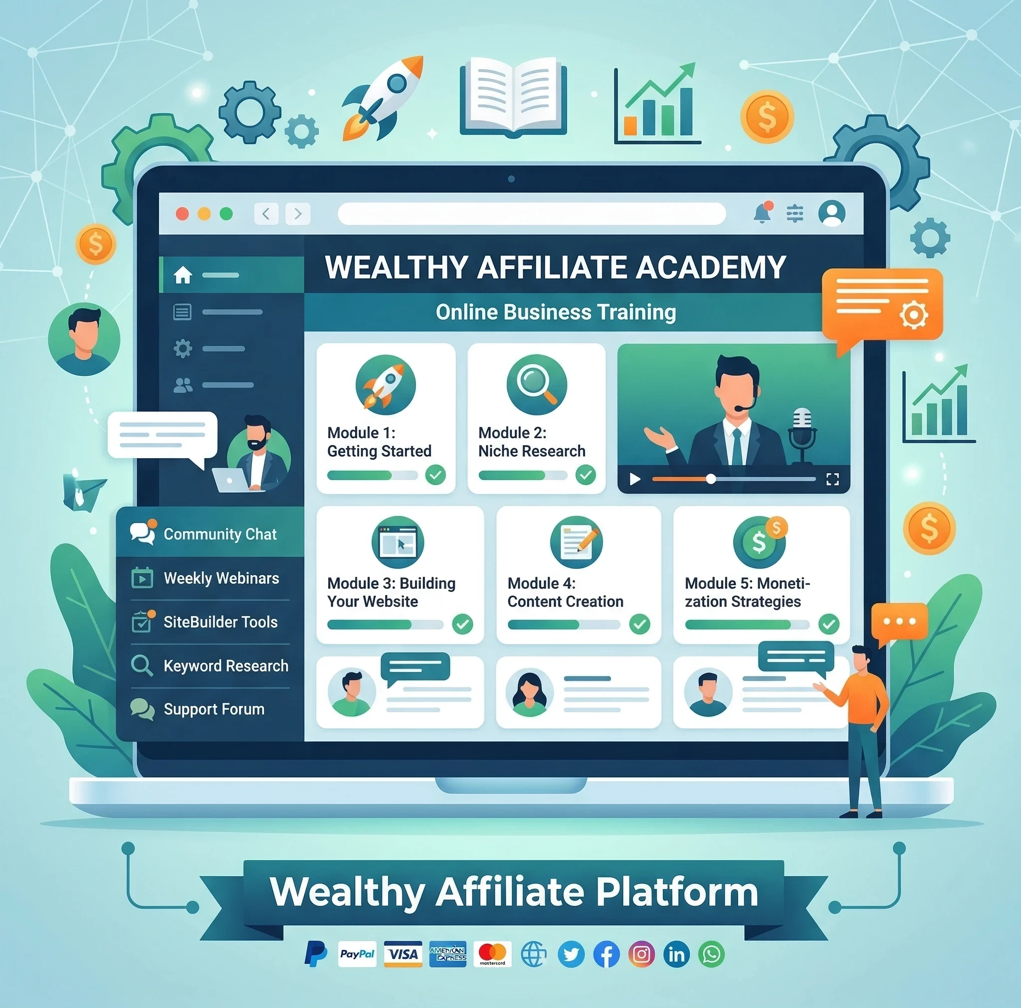 Wealthy Affiliate training explores how platforms such as: