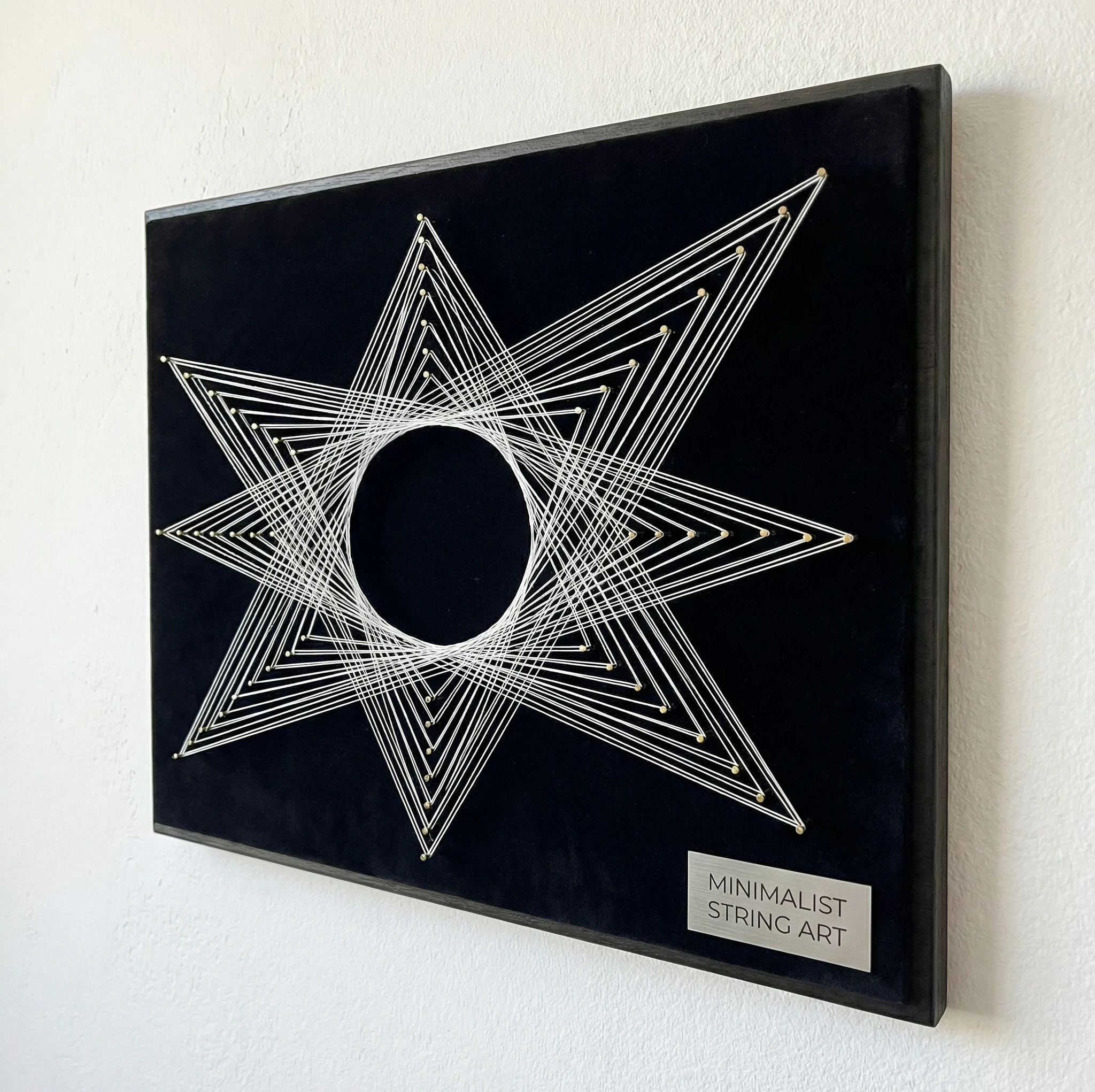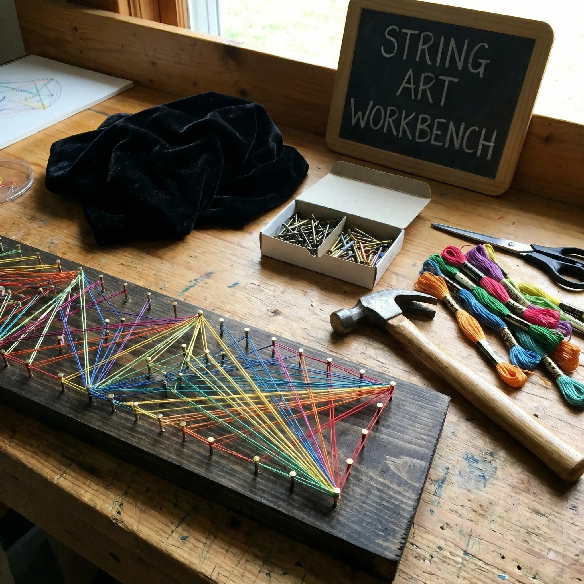 String art — also known as pin-and-thread art — is a creative technique that uses thread, yarn, or wire wrapped around nails hammered into a wooden board to form patterns, shapes, or images.