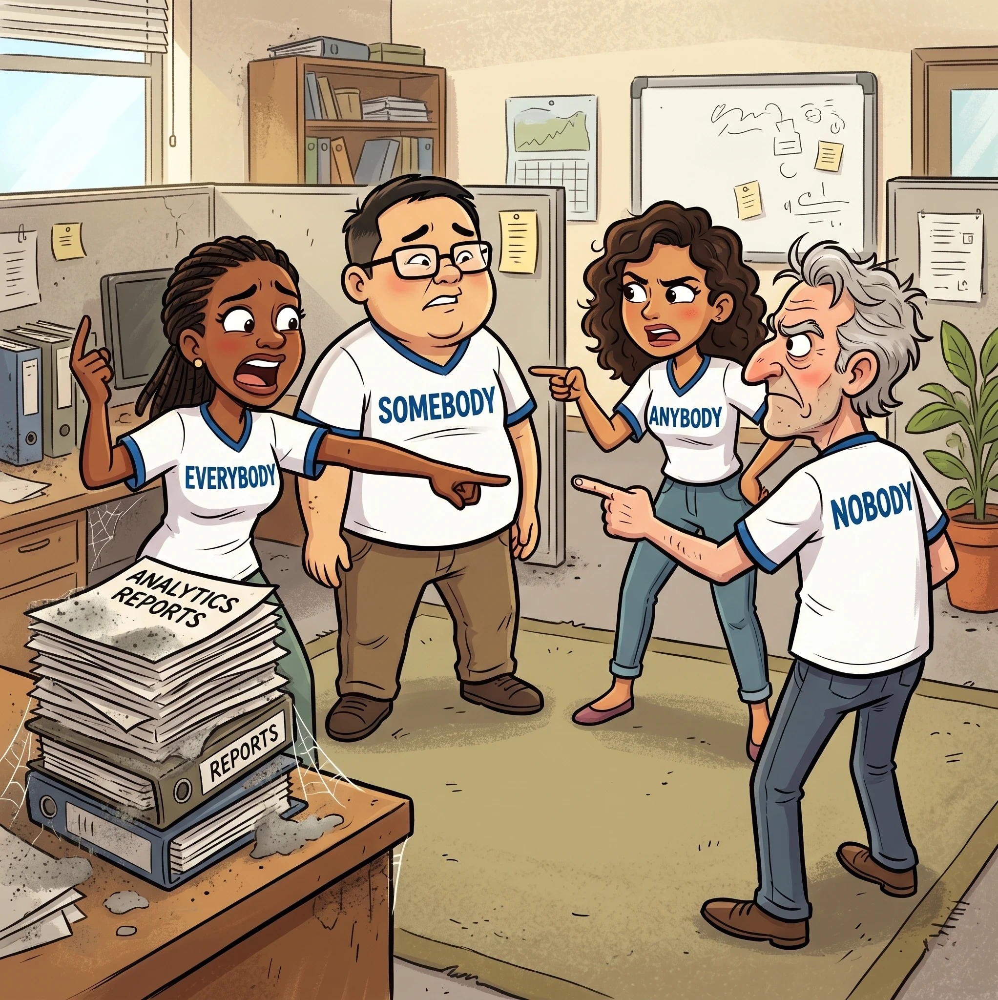 Everybody blamed Somebody for the mess... Nobody did what Anybody said.
