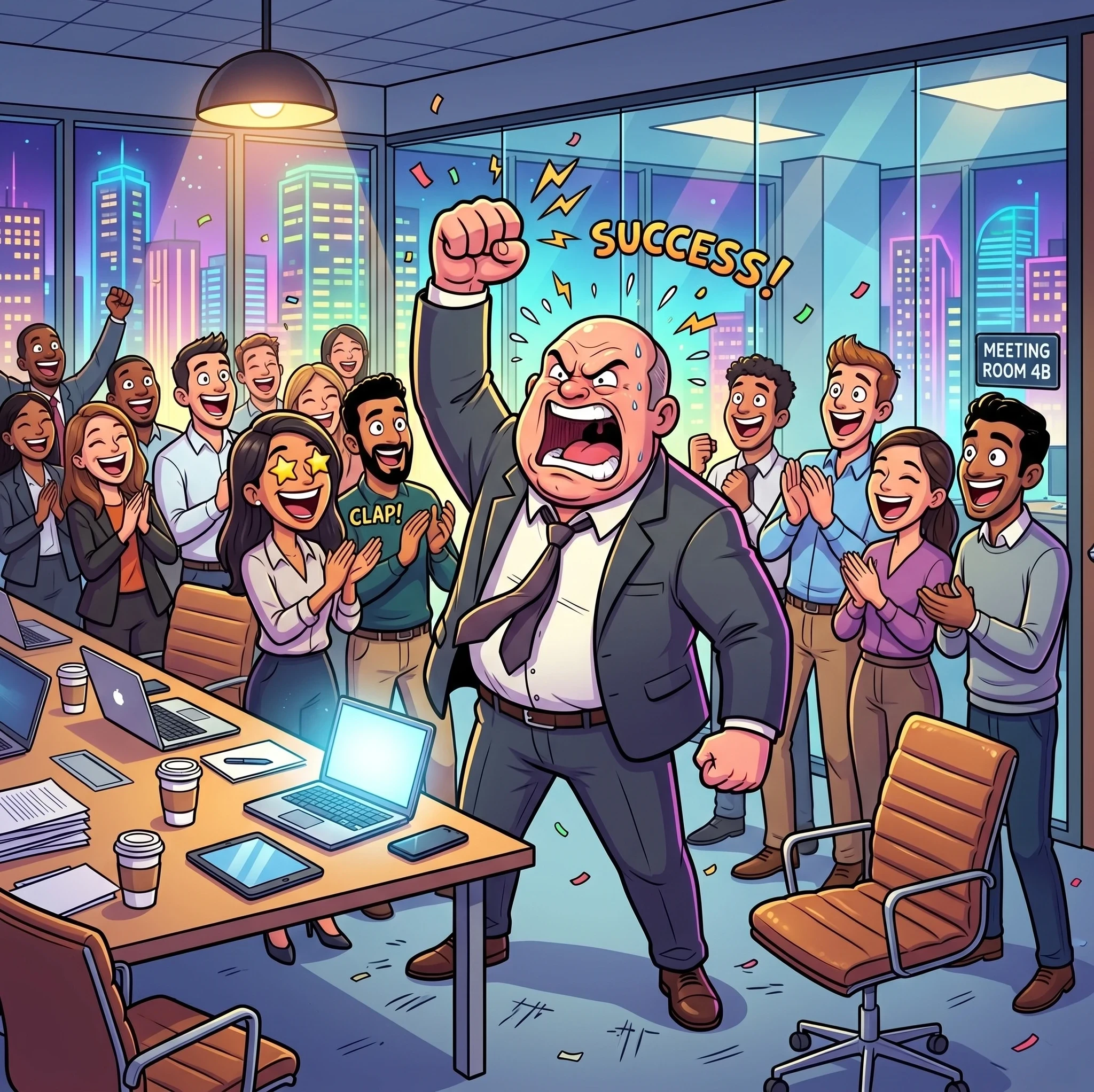 The boss screamed in fury, "This team is a joke!"