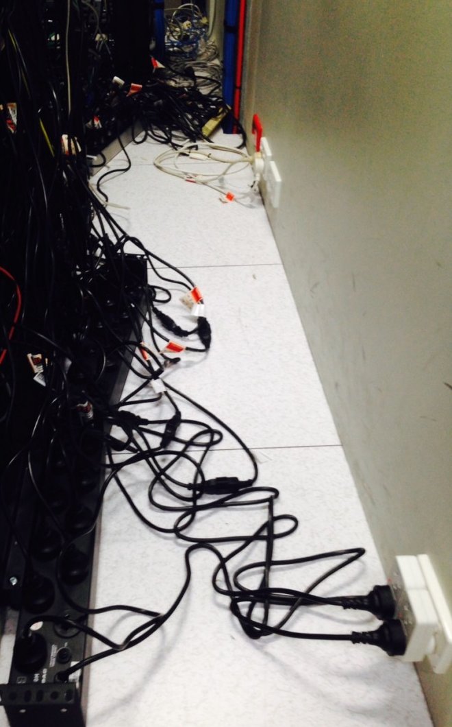 Yeah it was a disaster, but we have it all fixed now with redundant UPS systems in place and all the cables have been cleaned up, no more hazards of tripping on cables.