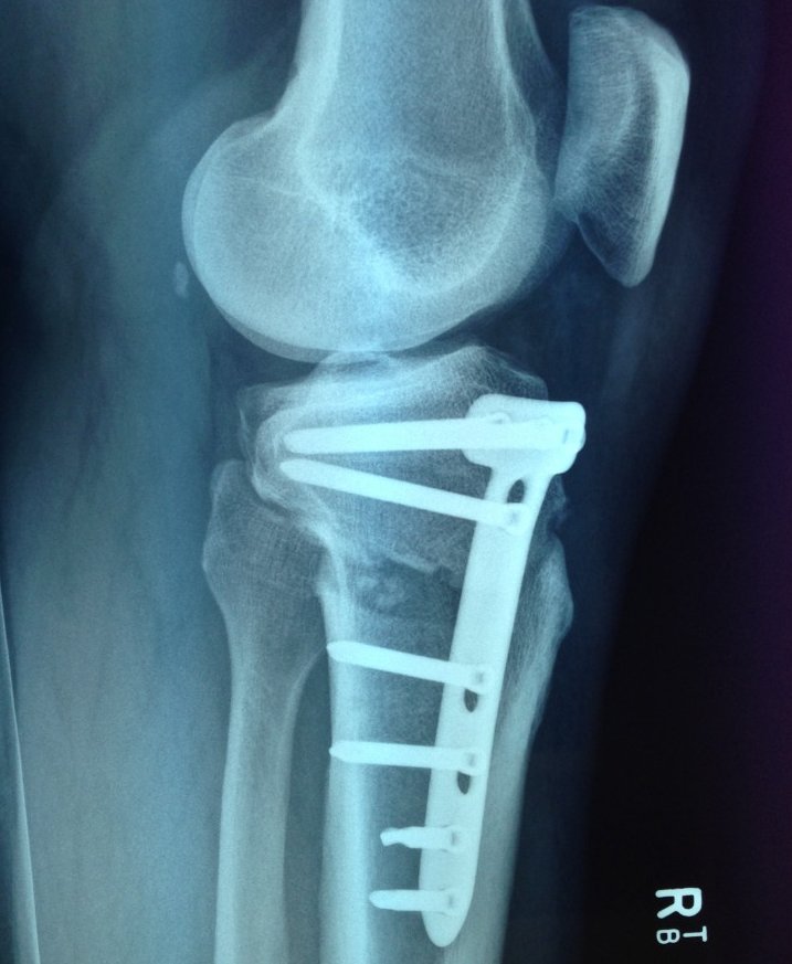 It's been over 3 years now since my last surgery and that was to have the Thomas Plate put in for a High Tibial Osteotomy (basically it was to stop bone on bone grinding in the knee...YEEK). Don't worry I wont go into the gruesome side of what was done, but I have attached the X-Ray image of the plate & screws. As you can see in the x-ray I had a T-Plate & 8 screws "installed" on the right leg.... It fixed the issue of bone on bone.