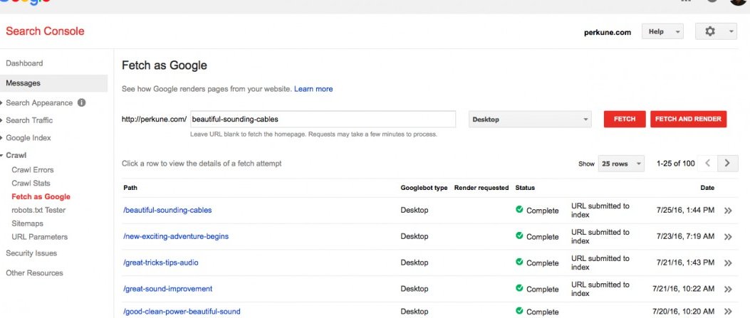 This is the Google fetch page that you go to when you want to submit your or "Fetch" the URL that you have been working on
