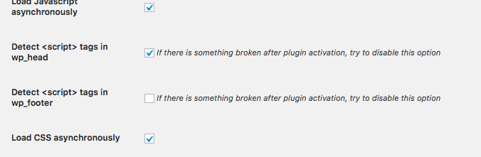 BUT - small problem I found that the page had a shift when moving between pages so I did some more playing and unchecked this option - dectect script tags in the footer - see below
