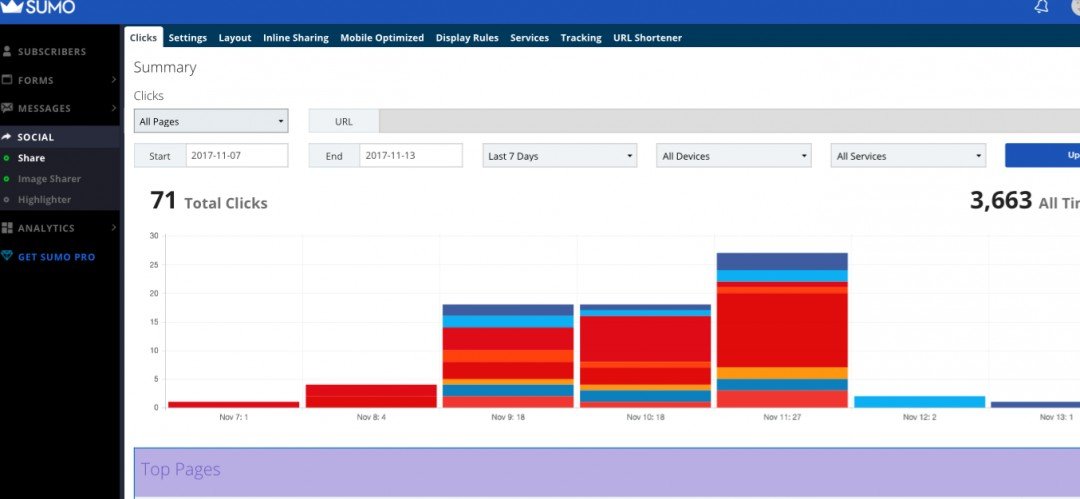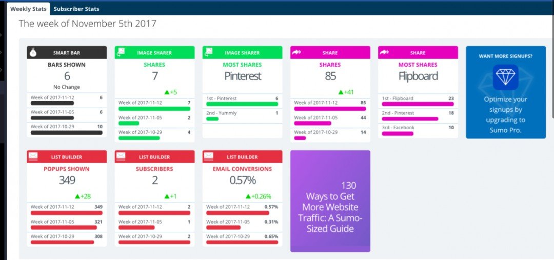 This tells me who is sharing and what is happing for the week but you can choose the time frame your self. I also use SumoMe for a more detailed view of social - see below