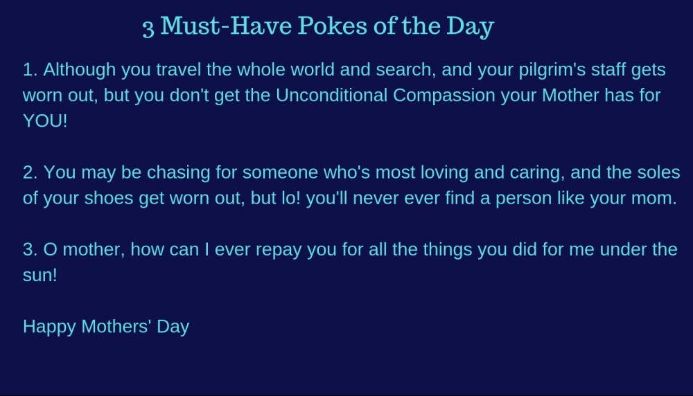 And yes, our mothers should be loved but we tend to neglect them most of the time and this is especially true if they are still living with us and so, THIS DAY is exclusively earmarked for mothers that our love is manifested in toto.