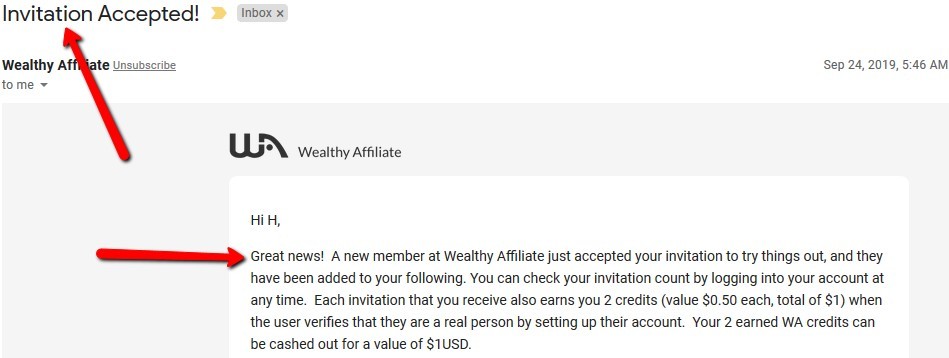 Anyways, it was a real thrill seeing it with my own eyes. The happy news hinted at is getting a New Referral at Wealthy Affiliate to try things out and earned me 2 credits. Wow, this is encouraging. Here's the proof: