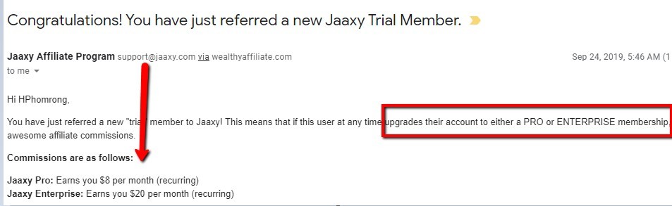 Again, when I hit the 'Update Column' of my Gmail account and out of the blue popped up this Congratulatory Mail telling me that I had just referred a New Jaaxy Trial Member.