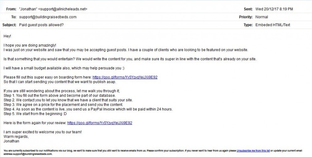 It promised me monetary rewards if I would let some of their customers and clients publish their material on my website.
