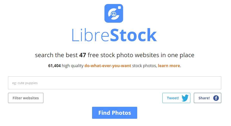 " LibreStock is a meta search engine that scans and indexes the stock photos from 40+ different websites. We provide you with the biggest searchable database of free high-quality stock photos on the internet. "