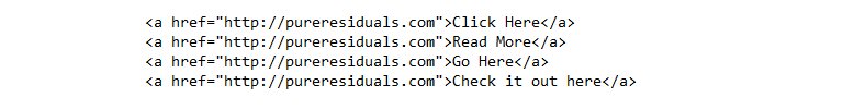 Google would love to see your website flourish as an authority in your chosen niche market. They don't like to see cheap websites come and go; neither do you and I. One of the ways to stand out as a website that is here long-term is to create a brand - Mine is known as "Pure Residuals" because I'm into creating residual income. This is my chosen brand name and how I market it with anchor text half the time. So, taking the example above, here's how mine would appear:
