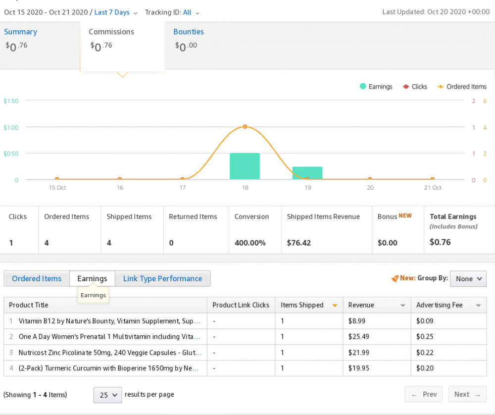 Yesturday I was checking my Amazon Account and what I found is that I have 4 Sales with my commission already placed in.