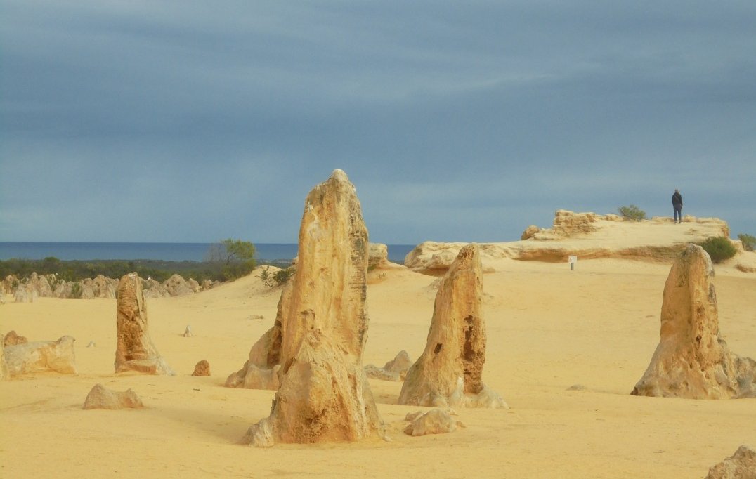 To day we went for a day trip to an area known as the "pinnacles" which is something like I have never seen before. They are weathered rock spires which come up out of the yellow dunes. Some are as high as 3.5 meters with some having jagged tops and others a dome like top resembling a tombstone. Made up of shells they date back millions of years and are scattered the landscape creating an eerie appearance