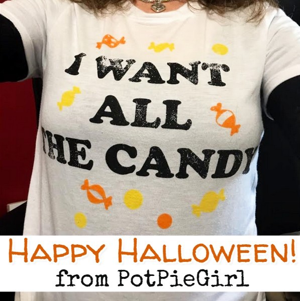 We don't get trick or treaters here at my house. I live in a small 8 house neighborhood and my house is WAY up a hill - if any kid makes it up to MY front door, I'll probably just give them money (and a bottle of water...lol!)