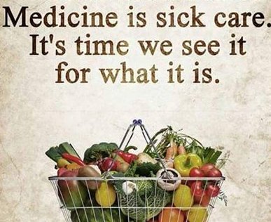 The very contradiction in the caption above is meant to be thought provoking. Medicine is sick care. Nutrition is health care. Words and pictures formed in our minds are too often replaced by the next thought as opposed to the last lesson. Medicine is necessary but in no way is medicine mandatory. Medicine should not be the "go to" shotgun, no huddle offense that pummels mankind daily, hourly, even every second. Variations of "let food be thy medicine and medicine be thy food" are quoted widely - but is the message utilized?
