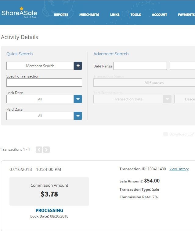 Then tonight I somehow got the gumption and slowly started going through my affiliate programs. I didn't find much traffic in Amazon so I didn't get hopeful. Then I'm jumping onto Share-A-Sale, which I had yet to make a commission on the entire time I've been blogging....and voila.